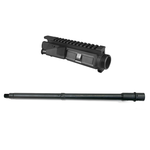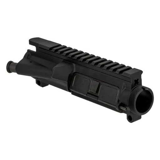 The uppers come as shown, complete with ejection port cover and forward assist installed, a matte anodizing and the LMT logo lasered on.